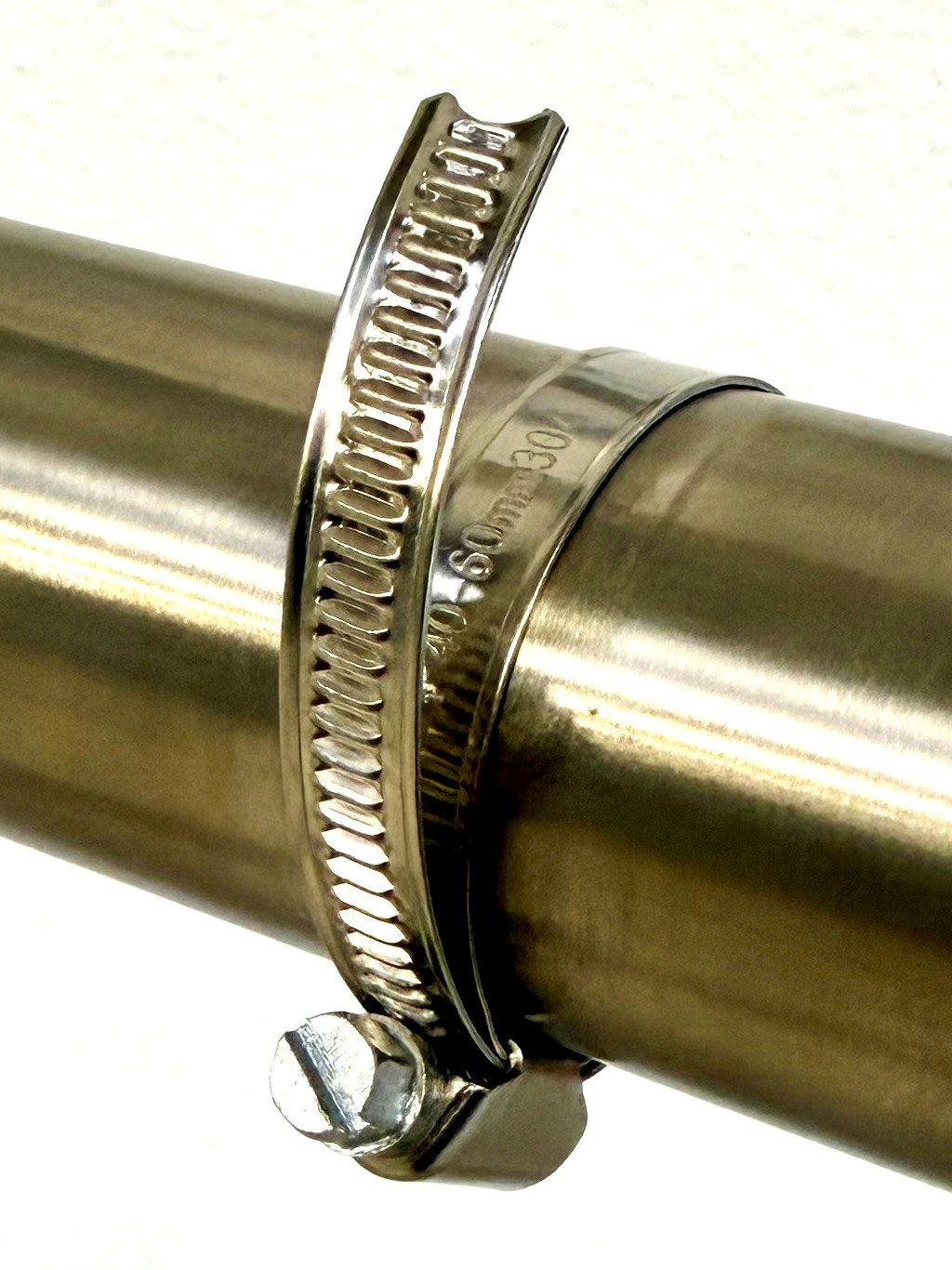 Das Trägerelement ist aus Edelstahl, Werkstoff-Nr. 1.4301 hergestellt und lässt sich mit der angeschweißten Rohrschelle am Rohr befestigen.